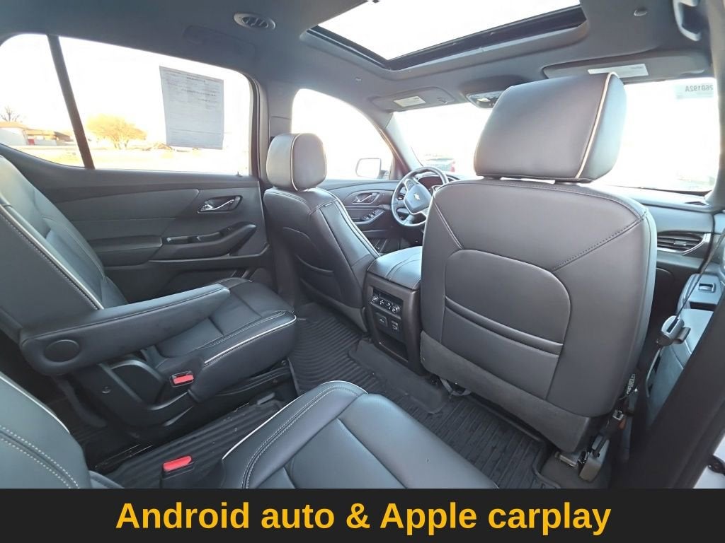 Step inside this Traverse Premier, and you'll be enveloped in a world of luxury and convenience. The perforated leather-appointed seating offers unparalleled comfort, while the heated and ventilated front seats and heated steering wheel ensure you stay cozy no matter the weather. The panoramic sunroof floods the cabin with natural light, creating an airy and spacious atmosphere.